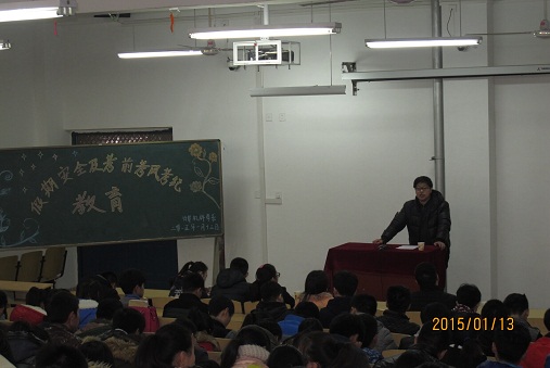 2015年1月13日13:00,计算机科学系在2教304开展了假期安全及考风考纪教育活动。系副主任李友国、团总支书记朱猛、辅导员老师、14级及部分13级学生参加了本次活动。