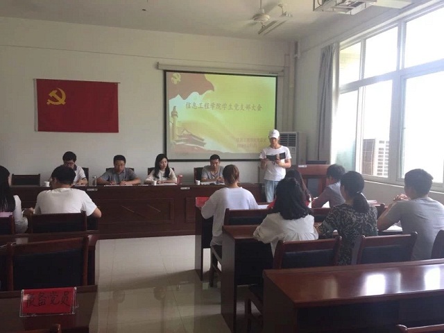 为完成接收中共预备党员和中共预备党员的转正工作,信息工程学院于2018年6月1日下午3点,在1A307召开了2018年上半年学生党支部大会,出席本次大会的教师有信息工程学院教职工三支部书记王同军、学生一支部书记马原、学生二支部书记吴锋、学生三支部书记周瑞乾以及所有学生正式党员、预备党员、拟发展对象以及群众代表等。