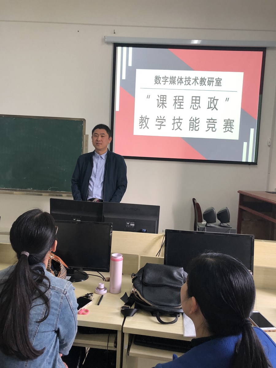 为了提升数字媒体技术教研室教师在专业课程中融入“社会主义核心价值观”的教学技巧,加强专业课教师实施“课程思政”的主动性和积极性,引导专业教师课程思政教学基本功训练,推动数字媒体技术教学团队建设,4月11日下午,数字媒体技术教研室在科技楼1A407举行了“课程思政”教学技能竞赛。教研室共9名教师参加比赛。