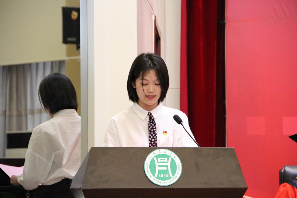 学位授予仪式在庄严的国歌声中拉开帷幕。何勇宣读了学校2021届毕业生学士学位授予决定及信息工程学院授予工学学士学位毕业生名单。校长邢勇逐一为获得学士学位的毕业生拨穗授位,并合影留念。教师代表侯丽萍、毕业生代表苗宁、在校生代表陈思宇先后上台发言。
