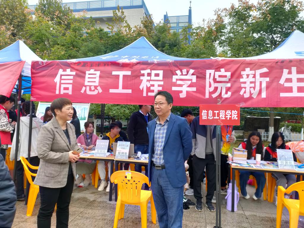 迎新期间,学校领导高度重视,校党委书记余作斌、校长邢勇亲临信息工程学院迎新现场指导工作,详细询问迎新情况。学院领导也深入学校返校值班点、迎新报到点、新生宿舍,及时了解新生报到动态,协调安排各项迎新工作。看望慰问迎新工作人员和志愿者,对在迎新一线忙碌的教职工和学生志愿者们热情周到的服务给予了充分肯定。与在场的新生和陪同家长们亲切交谈,向他们介绍学院就业前景、师资力量、专业建设等情况,关心新生的学习和生活实际需求,拉近与新生之间的距离,帮助他们更好地融入学校。