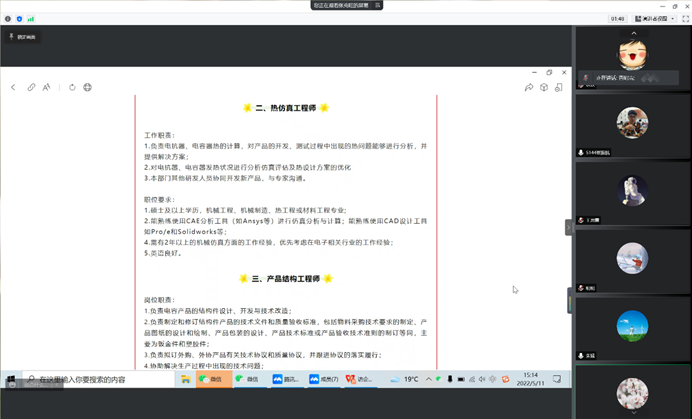 为进一步做好校园封闭管理期间2022届毕业生就业和2023届学生实习工作,扎实推进“访企拓岗”系列行动,5月11日下午,信息工程学院召开线上企业就业促进会,信息工程学院党支部书记梁其宇、党总支副书记朱猛、物联网工程教研室主任姜明富、物联网工程教研室副主任张克旺以及信息工程学院毕业生辅导员严舒平、许华瑾、张睿参加。此次就业促进会邀请了上海鹰峰电子科技股份有限公司和上海澳通韦尔电力电子有限公司参会,两家企业的参会人员包括企业的人力资源总监和研发部总监等。