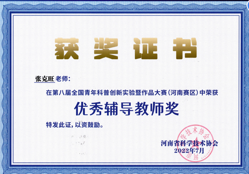 我院学生在第八届全国青年科普创新实验暨作品大赛河南赛区喜获佳绩