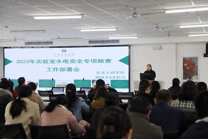 为落实校实验设备管理处工作安排,及时消除教学实验室水电安全隐患,确保实验室安全运行,3月21日下午,信息工程学院在双创618召开2023年实验室水电安全专项检查工作部署会。副院长潘赟主持召开会议,全体教师参会。