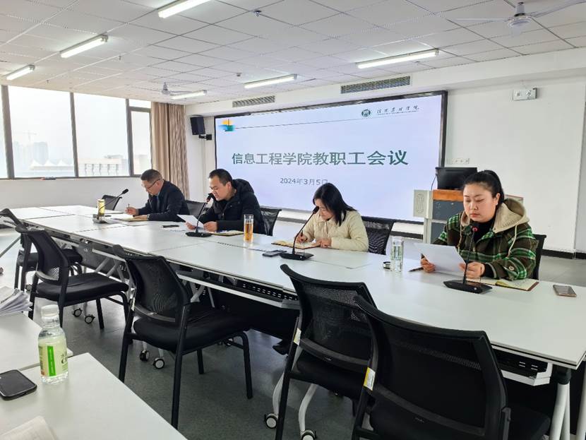 3月5日下午,信息工程学院在双创618召开全体教职工会议,安排部署学院新学期工作,明确未来一段时间的工作目标和主要任务。学院领导班子成员和全体教职工参会,会议由院党总支书记栗磊主持。