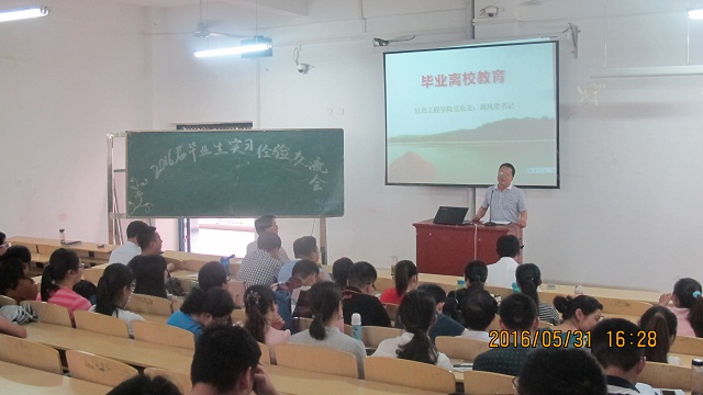 为认真有序地做好毕业生离校前的各项工作,确保2016届毕业生顺利毕业、充分就业和安全离校。2016年5月31日下午16:00,信息工程学院在2教204召开毕业教育座谈会,院党总支书记胡凤堂、院长商信华、学院全体教师及 2016届毕业生参加了会议,会议由副院长李友国主持。