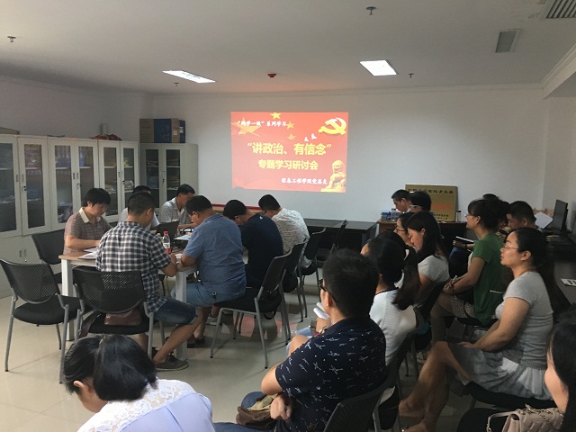 8月9日下午4:30,信息工程学院党总支在行政楼921召开了“两学一做”学习教育第一专题“讲政治、有信念”学习研讨会。会议由学院副院长李友国主持,全体教工党员参加了会议。会议由学习、研讨两部分组成。
