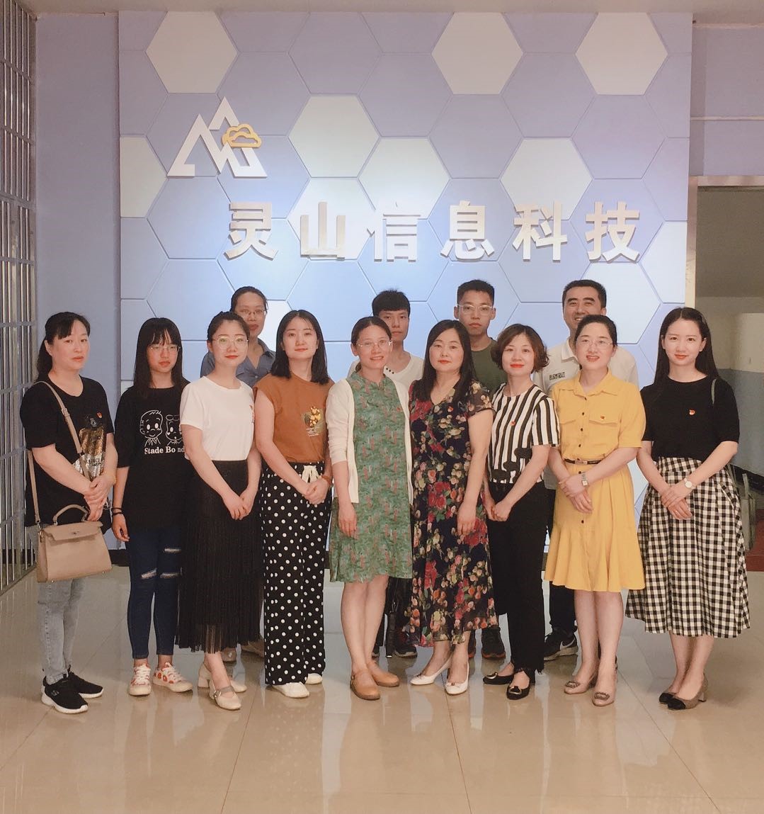 2019年6月22日上午,信息工程学院软件工程、数字媒体技术党支部党员教师侯丽萍、刘丽娟、徐莉、罗丹、李清玲、赵喜玲、殷明、吴桂玲、王丰斌、黄蓉、闵洁等,学生代表王耀冉、王浩博、白娇娇等一行人到河南省灵山信息科技有限公司开展校企学习交流暨迎七一主题党日活动。