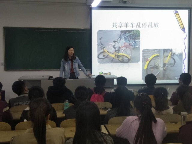 为响应学校号召,做好文明示范班级带头作用,信息工程学院物联网工程专业2017级全体学生,在辅导员冯玉涵老师的带领下,于2017年11月7日下午4:30在二教301教室开展“共享单车共享文明”主题活动。