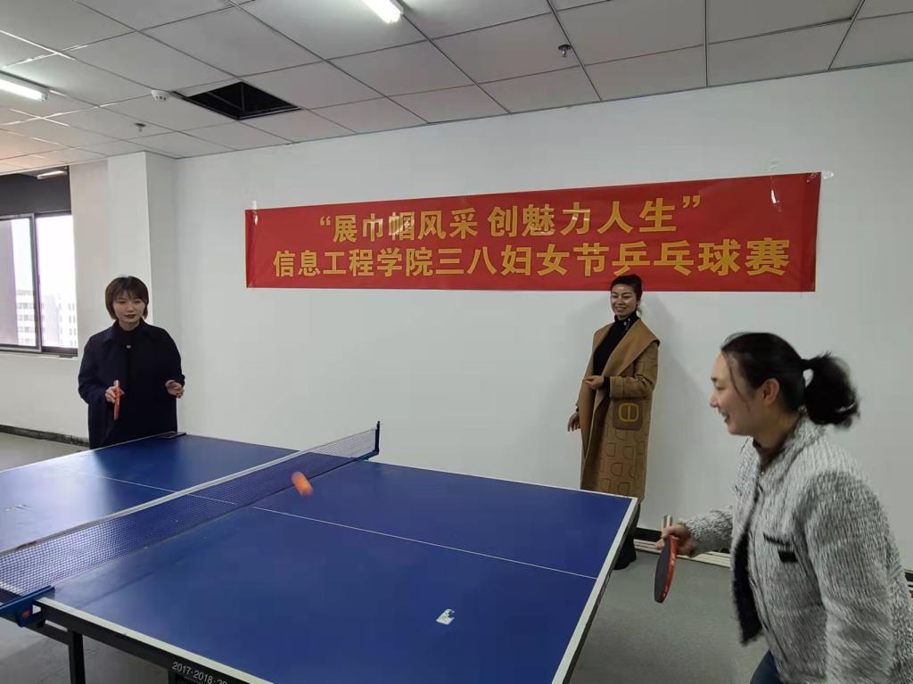为丰富我院女职工的业余文化生活,普及提高教师的乒乓球运动技术水平,在信息工程学院分工会的组织下,我院于2022年3月8日在双创618教室举行了以女职工为主的“展巾帼风采创魅力人生”信息工程学院三八妇女节乒乓球赛,以此释放压力,放飞心情。