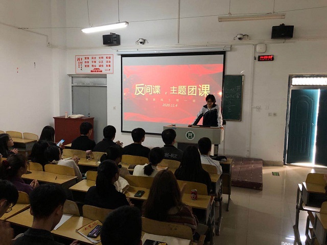 为纪念《中华人民共和国反间谍法》颁布实施六周年,增强广大师生学法知法懂法用法意识,创建平安和谐校园,11月4-8日,信息工程学院举行了《反间谍法》宣传教育主题班会,由各班辅导员主持。