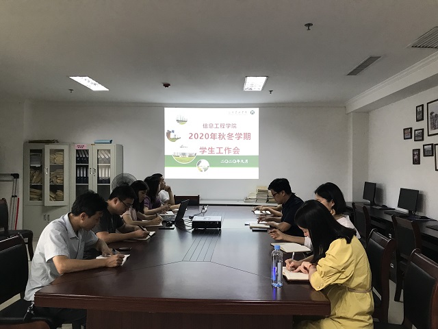 2020年9月1日下午,信息工程学院在行政楼921办公室召开了2020年秋冬学期学生工作会。学院党总支副书记朱猛、院团总支书记严舒平、学工组全体辅导员参会,会议由朱猛主持。