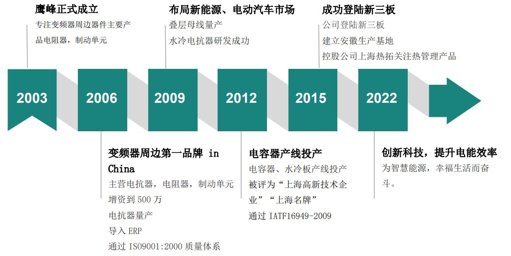 上海鹰峰电子科技股份有限公司,位于上海市松江区的高新技术企业,成立于2003年9月,专业研发、生产并销售电力电子无源器件。主要产品包括:薄膜电容、电抗器、电阻器、叠层母线、水冷散热器、制动单元、电力滤波器等,产品广泛应用于工业传动、新能源、智能电网、交通等领域。多年以来,鹰峰公司以“创新科技,提升电能效率,成就梦想”为使命,积极探索客户需求,不断致力于产品的开拓与创新,为新能源汽车、光伏、风力发电、轨道交通、工业传动等行业客户提供极具竞争力的无源器件综合解决方案和服务。鹰峰公司用最新的技术、可靠的产品和优质的服务不断满足客户新的需求,为客户提供完整的技术解决方案,赢得了广大客户的认可!如:西门子、ABB、施耐德、艾默生、日立、比亚迪、日电产、德尔福等等。