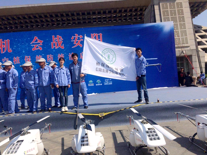 5月2日上午,副校长赵一鹏教授应邀赴安阳市参加“千人千机会战安阳·200万亩小麦病虫害航空植保统防统治”启动仪式,并为由农学院在安阳全丰航空植保科技股份有限公司实习的植物保护与检疫技术(农用无人机操控)专业学生组成的飞防服务队授旗,农学院郭世保副教授代表beat365在线平台官网服务队接受队旗。