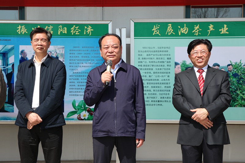 3月25日,大别山油茶学院在信锐油茶股份有限公司举行第二期信锐油茶班开班仪式。校长邢勇、大别山油茶学院名誉院长暨信锐油茶股份有限公司董事长熊维政、园艺学院院长暨大别山油茶学院院长龚守富、信阳市工信局原局长张春茗、信阳市人社局原副局长陈廷森、新县林茶局原局长党智华,大别山油茶学院特聘教授、信阳龙袍茶文化管理有限公司董事长陈强以及园艺学院相关老师参加了开班仪式。开班仪式由园艺学院办公室主任李蒙老师主持。