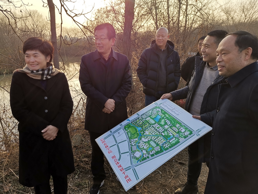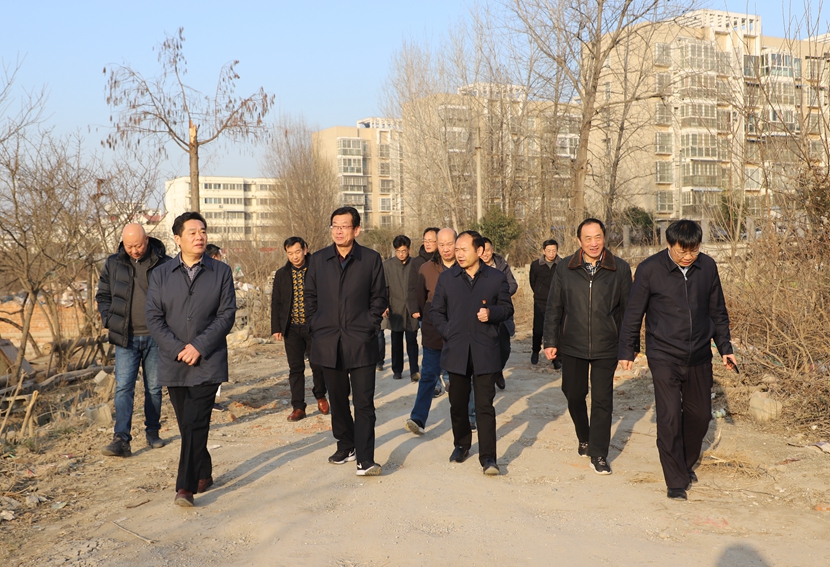 岁末年初,beat365在线平台官网二期教职工住宅区域征地传来喜讯,经多方努力,征地已经完成,即将启动住宅楼施工建设。12月31日下午,党委书记余作斌,校长郭长华,副校长赵一鹏、文宗锋,纪委书记李强,党委委员、组织部长陈廷国,党委委员、宣传部长王万玲及相关部门负责同志冒着凛冽寒风前往教职工住宅区域查看二期征地进展情况。信阳电子信息产业集聚区管委会主任、羊山新区党委书记陈延虎,羊山新区党委委员、副主任刘璇,羊山新区正处级干部李辉等参加了现场查看。