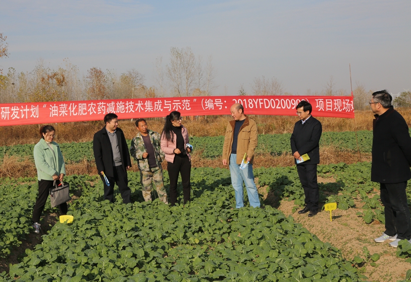 11月20日,校长郭长华带领相关部门、学院负责同志到光山县北向店乡检查农学院肖荣英老师主持的国家重点研发计划项目“油菜化肥农药减施技术集成研究与示范/2018YFD0200900”子课题“河南水旱轮作区冬油菜化肥农药减施技术集成示范/2018YFD0200904-08”的执行情况。