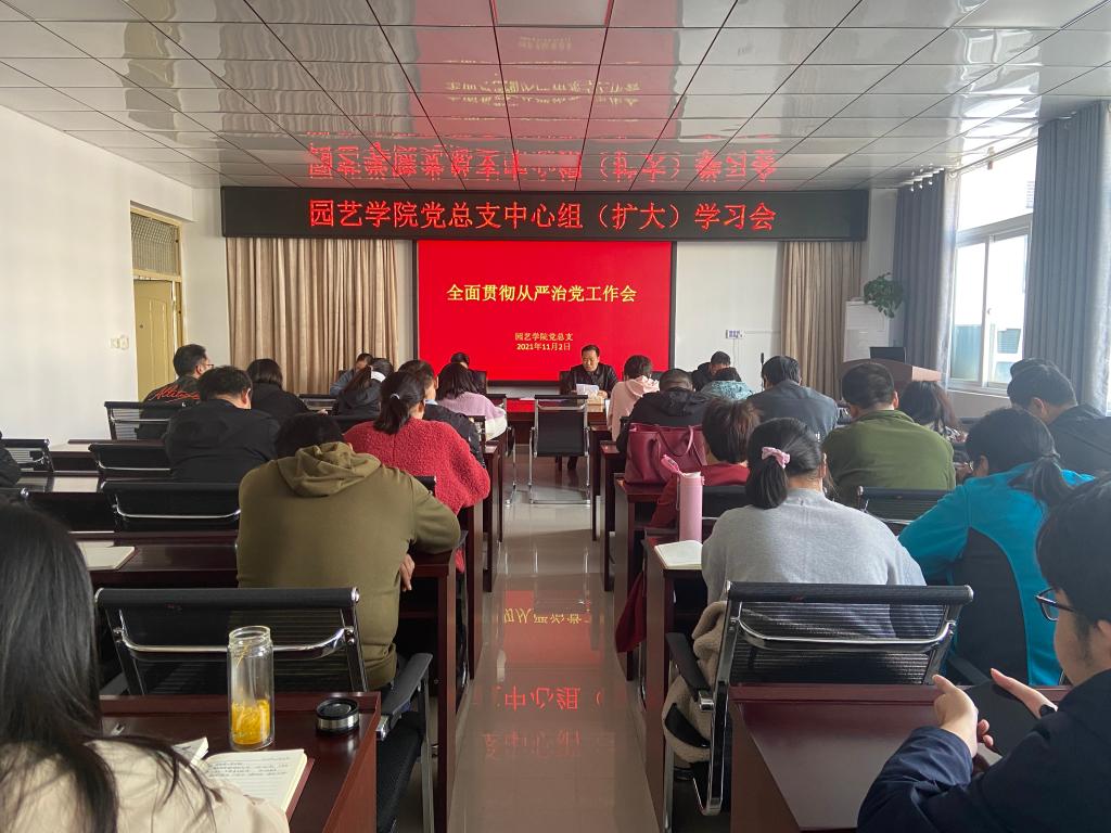 11月2日下午,园艺学院党总支在2A322会议室组织召开了理论学习中心组(扩大)学习会,党总支书记张祖成主持会议,全体教职工参会。