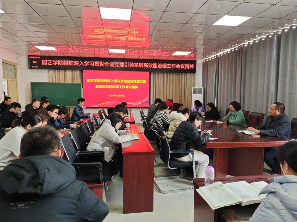 为深入贯彻落实河南省关于党建引领基层高效能治理工作会议精神,扎实推进学院党建引领基层高效能治理工作,2月25日,园艺学院党委在实验楼2A-322会议室组织开展全省党建引领基层高效能治理工作会议精神专题学习。学院全体教职工参会,会议由园艺学院党委书记杜丽主持。