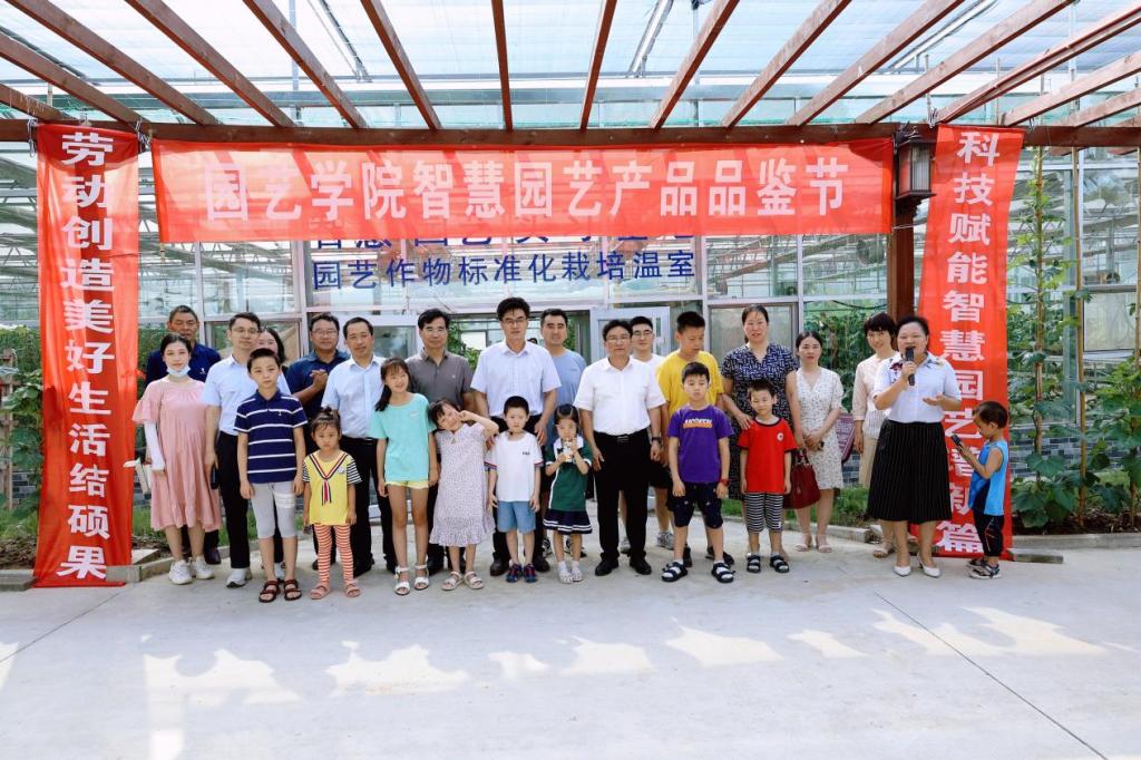2022年6月25日上午,园艺学院在园艺学院园艺作物标准化栽培温室举办了园艺学院智慧园艺产品品鉴节。副校长赵一鹏,科学技术处处长史洪中,农学、水产、信息工程等学院代表、社会园艺达人代表、园艺学院教职工们以及大朋友、小朋友们参加了此次活动。