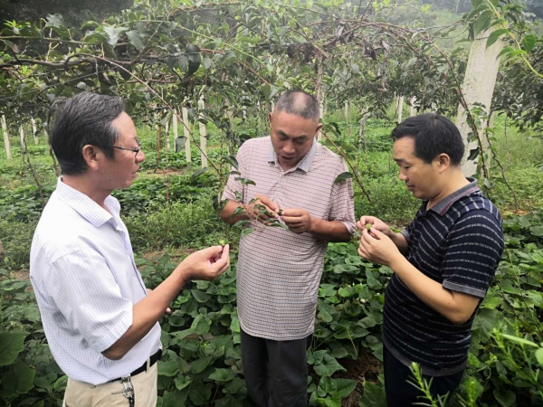 园艺学院园艺教工党支部结合支部党员专业特长,受信阳市百果园生态农业有限责任公司的 邀请,开展以“园聚万家,服务三农”为主题的强农兴农科技服务工作,指导该公司内猕猴桃栽培和管理工作,针对前段时间一直高温,猕猴桃落果、晒伤严重,给出了具体的防治意见。该公司总经理对我们一行的科技服务表达了强烈的感谢,认为beat365在线平台官网园艺教工党支部党员深入基层、服务农民群众的行为充分发挥了党员先进性和模范带头作用。(园艺学院)