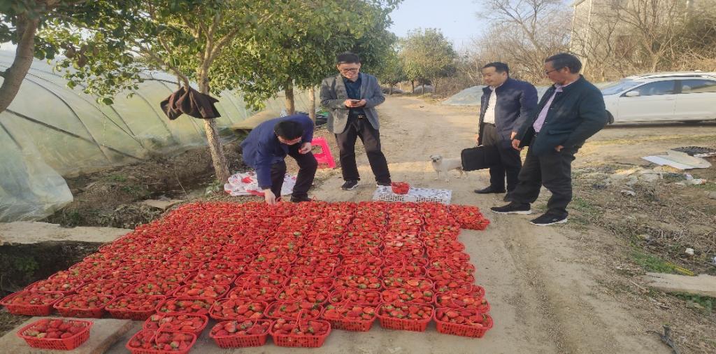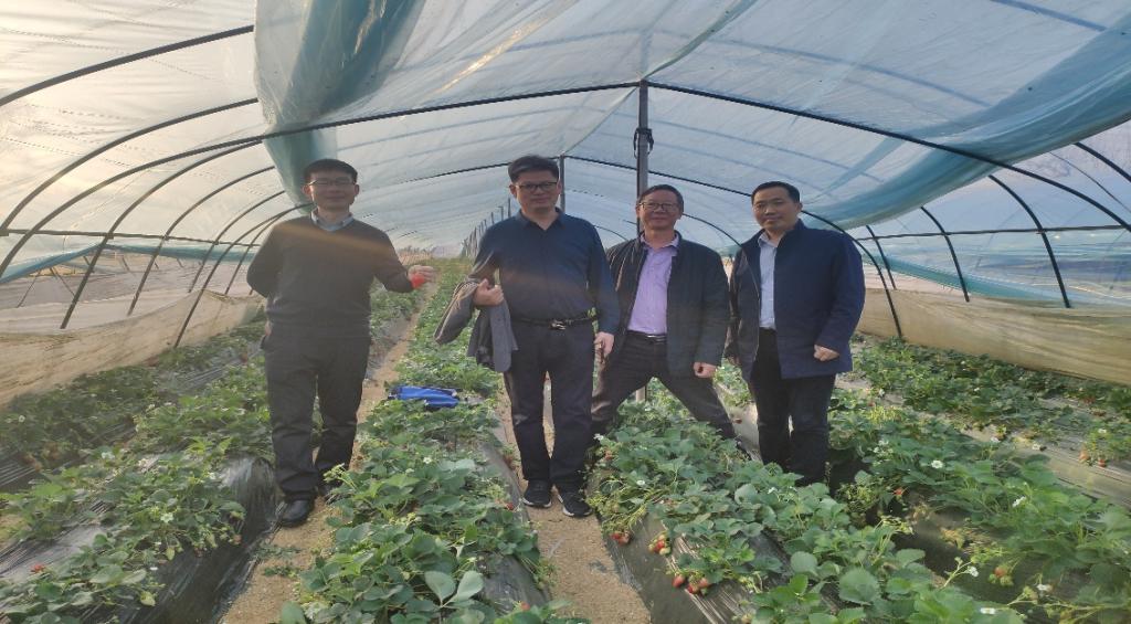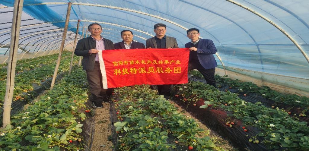 服务团邀请了中国草莓协会副理事长、河南省首席草莓专家、中国农科院郑州市果树所草莓课题组长周厚成研究员参与了此次科技服务,服务团一行在浉河区十三里桥程广德草莓大棚进行了实地指导。程广德种植草莓20个大棚,在服务团的指导下,今年草莓大丰收,每天可采摘600斤左右,直供信阳市几个大型超市。服务团一行根据基地现状,对草莓下一年品种选择、病虫害防治、生产定植等方面提出合理化意见,并对下一步的科技服务达成意向。
