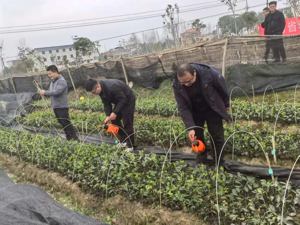 2月28日,在光山县联兴公司文殊乡黄庄育苗基地,科技特派员一行查看了油茶一年生苗的生长状况。科技特派员发现部分幼苗存在叶绿素含量偏低、根系发育滞后,营养不足的问题。随后对公司技术人员和附近农户开展了“油茶幼苗黄腐酸叶面肥精准施用技术培训会”。张琰现场讲解了油茶幼苗不同生长阶段的营养需求规律,重点演示了黄腐酸叶面肥的选择标准、稀释比例及喷施时机等关键技术,并通过案例分析强调了过量施肥对土壤环境和苗木生长的危害。随后,指导技术人员现场调配不同配方的叶面肥溶液,指导技术人员根据苗木长势、天气条件等因素科学施用。为了进一步精确评估黄腐酸叶面肥的实际效果,科技特派员还联合公司等开展了不同浓度黄腐酸叶面肥对1年生油茶容器苗生长影响的试验。