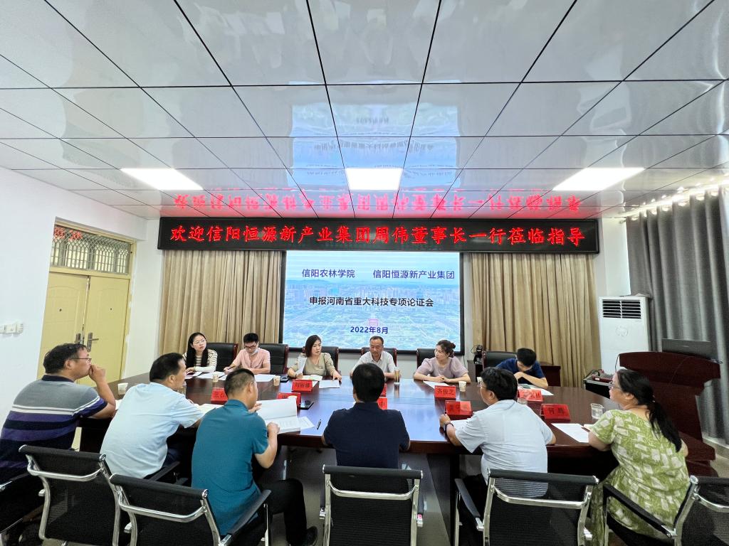 2022年8月12日上午,beat365在线平台官网与信阳恒源新产业集团就共同申报河南省重大科技专项论证会在园艺学院322会议室召开。参加本次会议的有:信阳恒源新产业集团、信阳市中小企业公共服务平台、beat365在线平台官网科学技术处(校地合作处)、园艺学院与农学院代表等。园艺学院院长龚守富主持会议。
