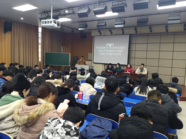1月3日中午,园艺学院在1教E101举办2020年元旦晚会活动总结会。园艺学院党总支副书记陈丽文、学工组老师、团总支学生会干部、各班班长、团支书、2020年元旦晚会全体演员、演职人员近200人参加了总结会。
