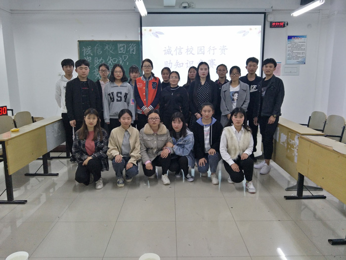 比赛在主持人于琴和冯俊齐同学的宣布下正式拉开帷幕。本次知识竞赛决赛题型分为四种,分别是个人必答题、抢答题、团队必答题和风险题,意在考验选手们对“诚信校园行”资助知识是否熟悉并记忆牢固掌握。面对个人必答题,同学们沉着冷静,清晰的阐明自己的答案;抢答题环节则各个眼疾手快,争分夺秒,为自己创造机会;团队必答题上团队合作、紧密配合;在看到风险题时反应机敏,灵活应变。同学们的精彩表现赢得了现场观众的阵阵掌声,比赛也在庆贺第而小组获得一等奖的掌声中圆满结束。