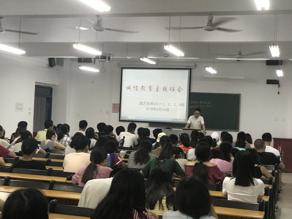 诚实守信是中华民族的传统美德,也是每个人的立身之本。临近期末考试,为严肃考风考纪,抵制不良考风,杜绝舞弊行为,还考场一片纯净的天空,园艺学院于6月26日召开诚信考试教育主题班会。