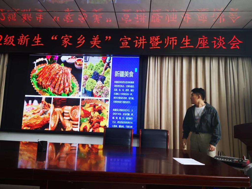 “家乡美”宣讲环节,山东学生代表岳泽众、新疆学生代表李怡磊、浙江学生代表王晓妍、俞子铖、河南代表黄奕豪分别以PPT辅助宣讲形式,宣讲了家乡的美食、美景、历史名人、文化古迹等,同学们在讲述过程中的骄傲感油然而生,感染到现场每个同学,大家纷纷相约疫情结束后结伴同游。