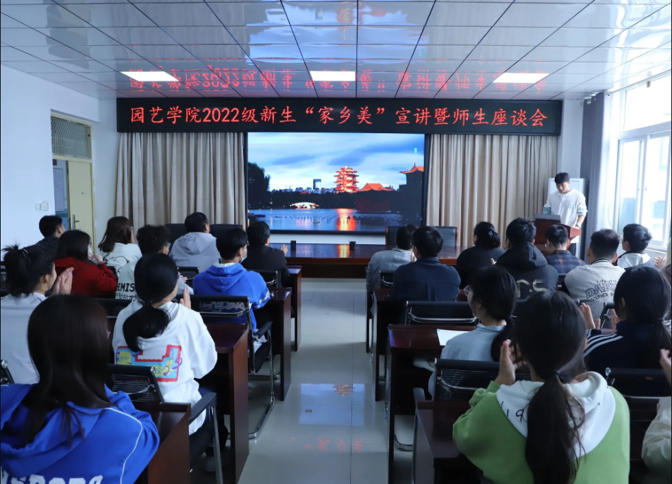 为精准落实立德树人根本任务,增加师生之间及学生之间相互了解,更好服务广大师生,10月9日中午,园艺学院在实验楼2A322会议室举办2022级新生“家乡美”宣讲暨师生座谈会。园艺学院党总支书记张祖成、院长龚守富、副院长刘松虎、2022级班级辅导员、2022级各班班长、团支部书记、来自新疆、山东、浙江、安徽、河南五个省份的学生代表参加了宣讲座谈会。党总支副书记陈丽文主持座谈会。