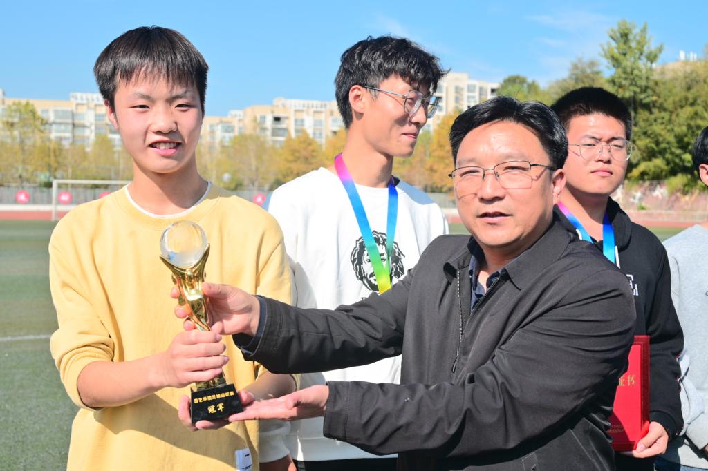 10月20日中午,园艺学院在体育场举办新生班级足球循环赛颁奖暨新老生足球对抗赛。学院足球队及2022级所有学生班级参加了本次活动,院长龚守富、党总支副书记陈丽文为获奖代表队颁奖并现场观看了新老生足球对抗赛。
