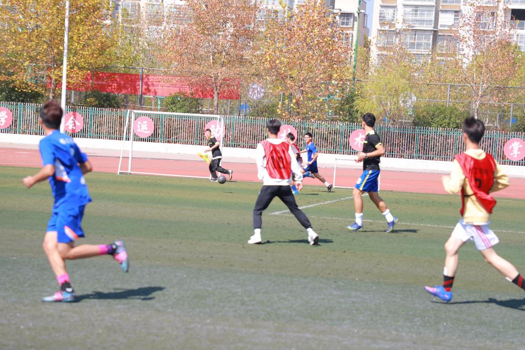 新生循环赛后择优组建了雏鹰代表队,与院鸿雁足球队开展了新老生对抗赛,为保证公平,特别外请了外国语学院同学程凯、刘嘉乐担任本次比赛的裁判。双方于13:00入场,龚守富亲自开球,裁判吹哨,比赛开始,鸿雁队在队长马冲带领下将操作拉满,意识也最为顶尖,很快就攻破了雏鹰新生队球门,之后又获得一枚任意球,王辉学长直接大门,地滚球,死角,球进了!!!新生队的士气仿佛遭到了打击,但是并没有放弃,老生队又近了一粒球,紧接着雏鹰队抓到了机会,直接反击,刘晨旭单刀直入,攻破了球门,全场欢呼。下半场鸿雁队又进一粒,比分以5:1结束比赛。