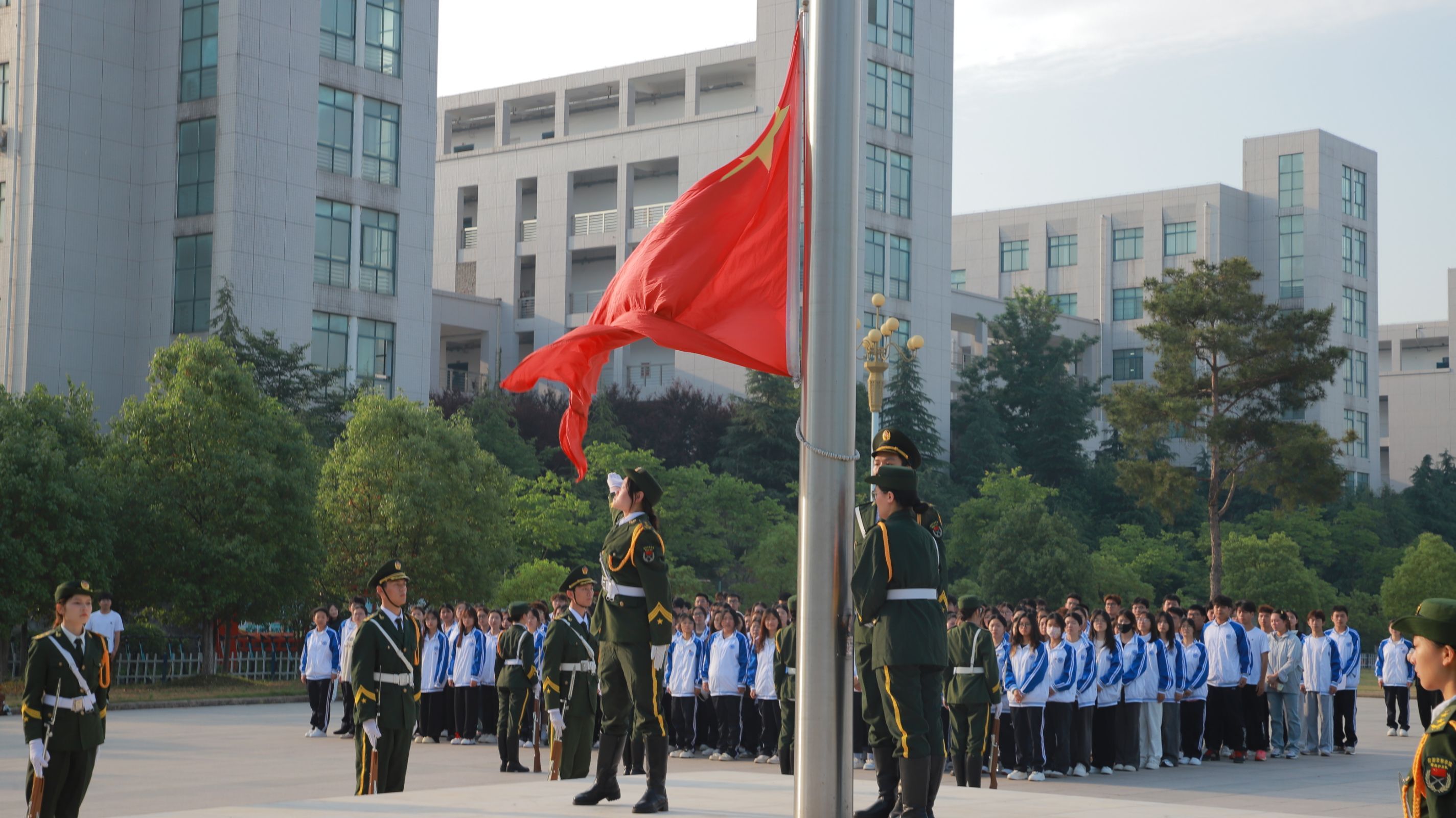 早上700,踏着晨曦朝阳,国旗护卫队迈着铿锵有力的步伐,护送鲜红的五星红旗走向国旗台,鲜艳的五星红旗和雄壮的国歌随着太阳一起冉冉升起。学生代表园艺专业23级方洁和田雨欣分别发言,两位学生代表号召园艺学子以五四青年运动的精神为指引,珍惜青春,不负韶华,用我们的汗水和智慧,谱写出无愧于时代的青春华章。