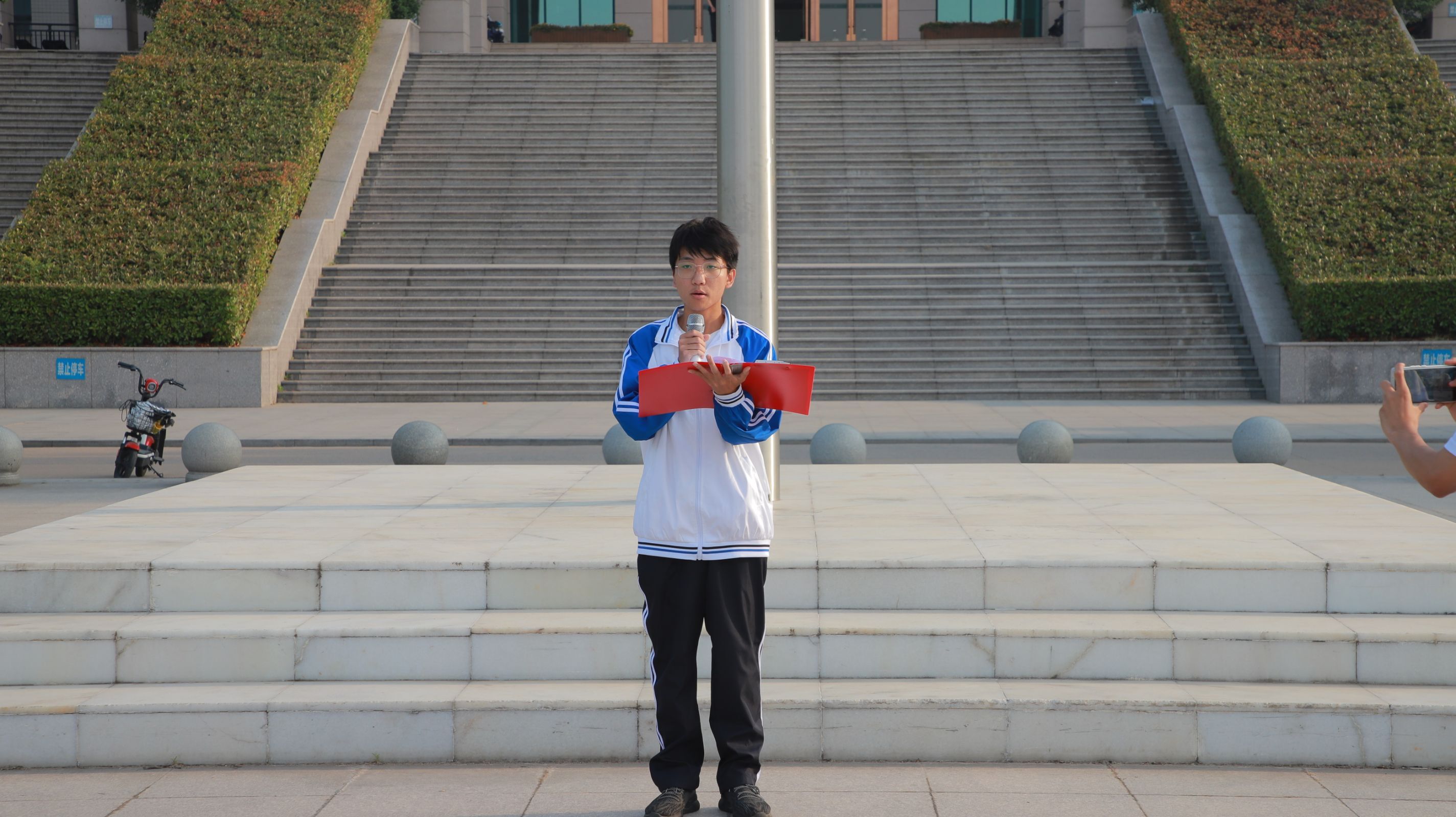 520日,园艺学院在汝宁广场举办了“赓续五四薪火,谱写青春华章”主题升旗仪式。院党总支书记杜丽、团总支书记王磊鹏、部分学生干部代表和2023级全体学生参加了升旗仪式。