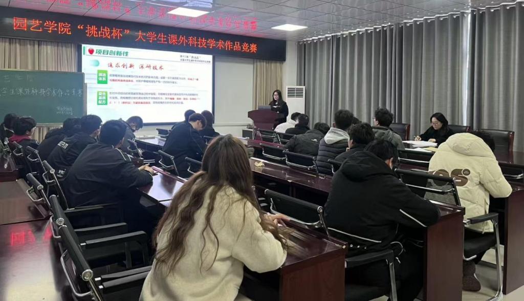 2025年3月10日,园艺学院在实验楼2A322举办“挑战杯”院级选拔赛。本次比赛以“创新驱动未来,科技引领发展”为主题,展示了大学生在科技创新领域的卓越成果。比赛选任学院经验丰富的专业课教师担任评委,由党委副书记孙琳苒主持。
