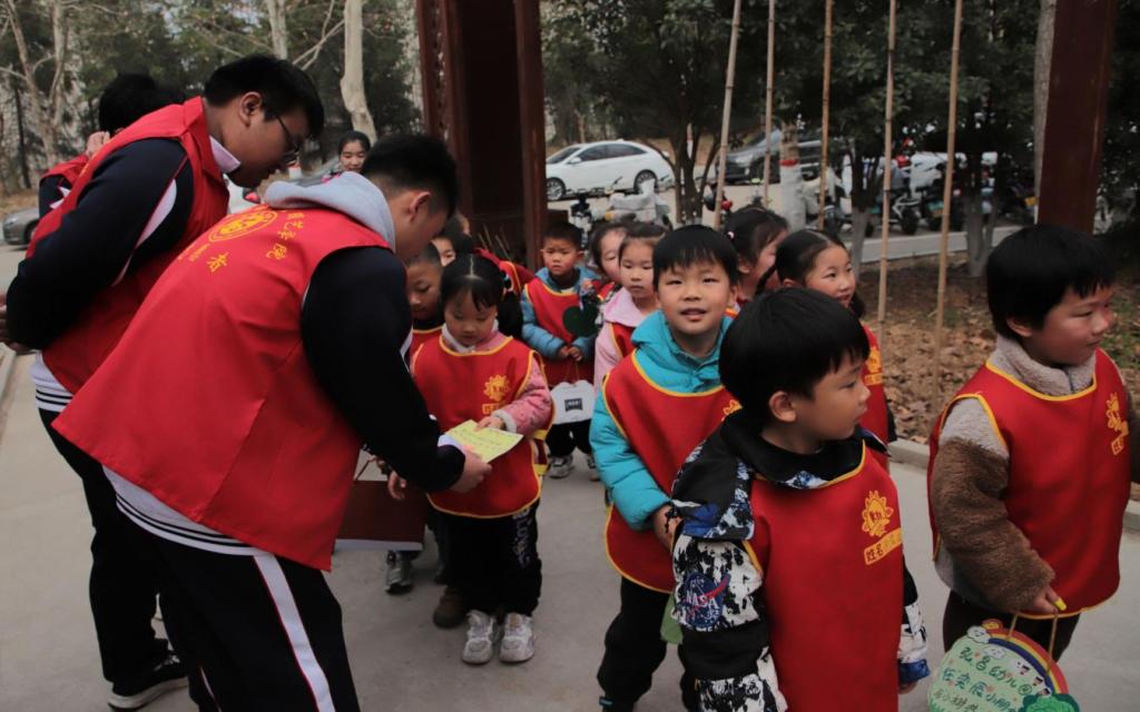 活动在一片期待与热情中拉开帷幕,在学生志愿者的引导和协助下,现场众人纷纷行动起来。师生分工明确,有的挥锹挖穴,有的扶植树苗,有的填土踩实,有的提水浇灌,每个环节规范有序,现场呈现一派热火朝天的劳动景象,处处洋溢着欢声笑语。学生志愿者们带领幼儿园师生参观馨园实验基地的过程中,充分发挥专业优势,为小朋友们悉心讲解各类植物的名称、特点、生长习性等知识。通过志愿者们生动有趣的讲解,小朋友们不仅增长了见识,更在心中种下了热爱自然、探索科学的种子。
