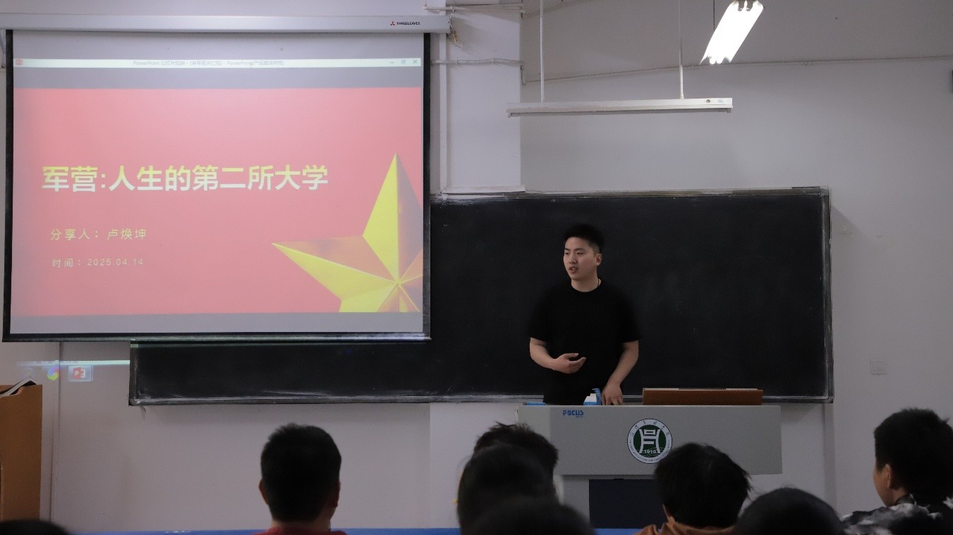 退伍复学学生卢焕坤和胡卓渲从亲身经历出发,生动形象地向同学们讲述了在部队丰富多彩的经历,并从兵种选择、入伍训练、部队管理以及退伍待遇等方面做了汇报分享,与参会的同学进行了分享和深入交流,并鼓励大家携笔从戎、报效祖国,在火热的军营实现青春价值。