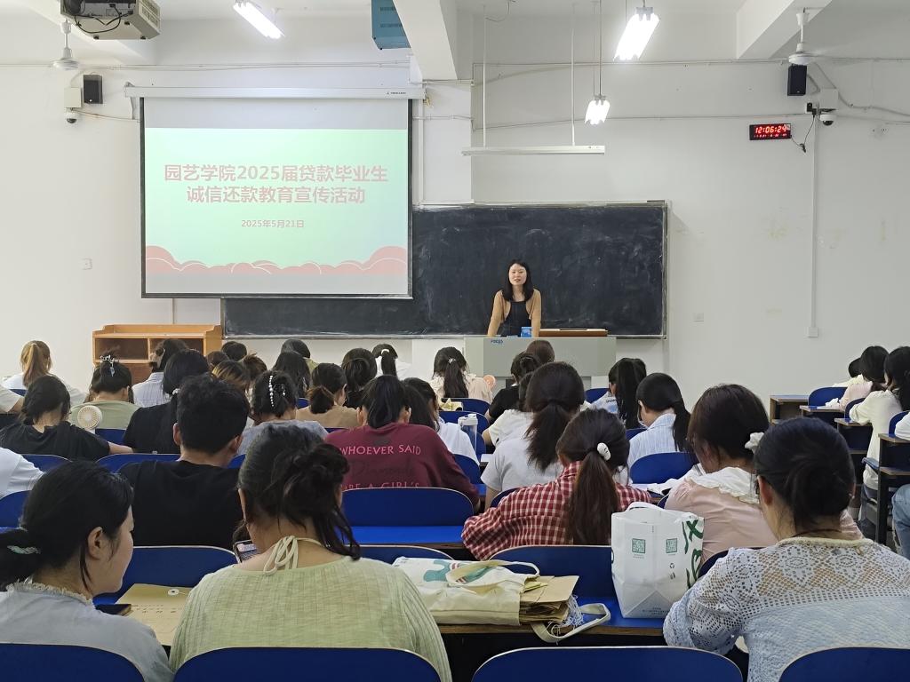 为进一步加强大学生诚信、感恩教育,提升毕业生助学贷款还款意识,帮助毕业生明晰还款流程与责任,2025年5月21日,园艺学院在一教A104开展2025届贷款毕业生诚信还款、感恩帮助教育宣传活动,活动由园艺学院资助专员马敏主持,2025届贷款毕业生参会。