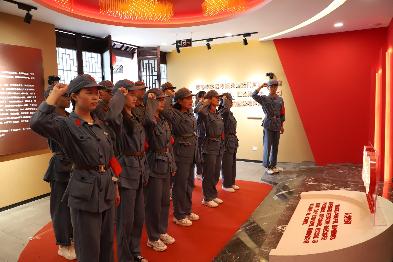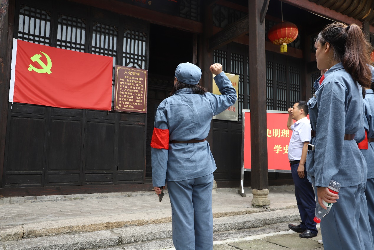 在展厅,张祖成为大家讲解了“王大湾会议”背景;在晋冀鲁豫野战军司令部旧址大厅外的党旗下,陈丽文带领大家重温入党誓词,提醒我们时刻谨记党员义务。