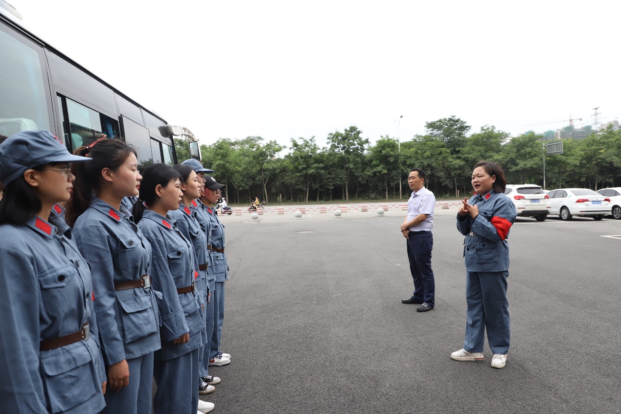 按照制订了详细的行程规划,老师与同学们都身着统一的服装,迎着朝阳,元气满满得乘车前往目的地。