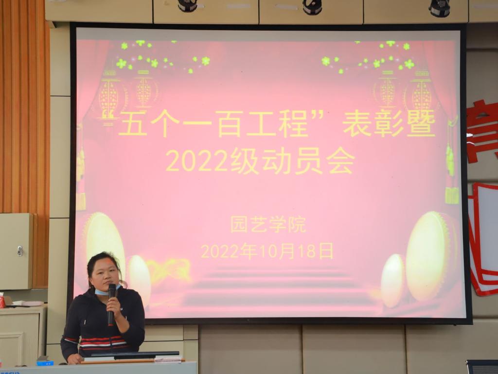 10月18日中午,园艺学院在一教E101三全育人大讲堂教室召开了“五个一百工程”2021-2022年度表彰暨2022级学生推进会,党总支书记张祖成、副书记陈丽文、专职辅导员陈娟娟和19级、20级、21级各班班长、团支部书记及2022级班级所有学生干部参加了本次表彰推进会。陈丽文主持会议。