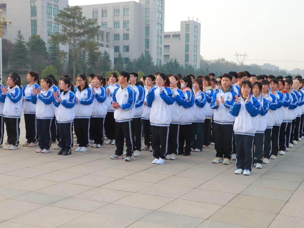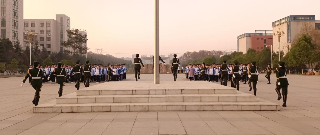 早上650,学生代表有序排列成两个方阵肃立于汝宁广场国旗台前,英姿飒爽的国旗队护卫着国旗走向旗台,鲜艳的五星红旗和着雄壮的国歌、随着太阳一起冉冉升起。学生代表园艺专业22级岳泽众和设工专业22级陈东分别发言。两位同学都表达了要学习雷锋精神,争做时代好青年。