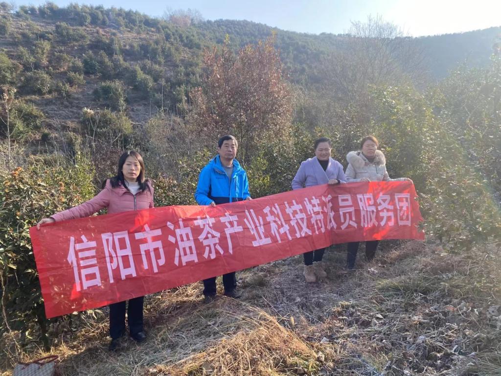 2023年12月19日,河南省科技特派员张琰教授、信阳市油茶科技特派员服务团团长陈丽文副教授及服务团成员王付娟、张莹丽老师赴信阳市浉河区游河乡开展油茶科技服务。