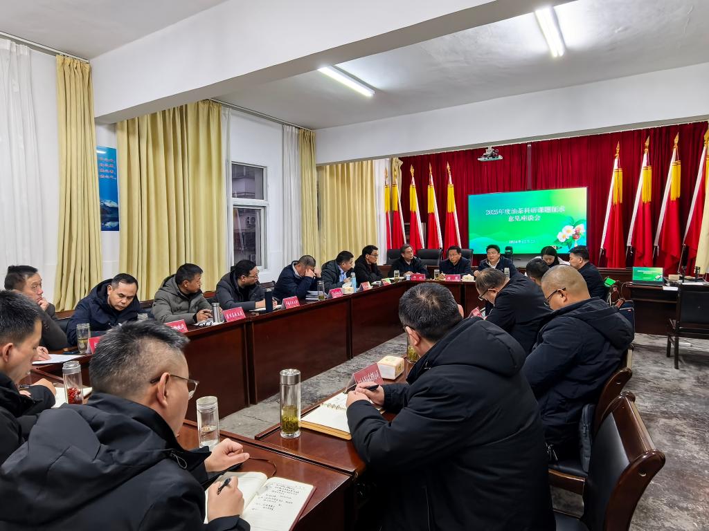 2024年12月23日,大别山油茶学院院长龚守富教授、河南省科技特派员朱振飞博士,应信阳市油茶产业发展中心邀请,出席了在市林业局五楼会议室召开的2025年度油茶科研课题征求意见座谈会。会议由信阳市人民政府机关党组成员、市林业和茶产业局党组成员、市油茶产业发展中心主任陈犁主持,旨在针对信阳市油茶产业发展中的关键技术瓶颈问题,征求各方意见,以推动科技成果转化。