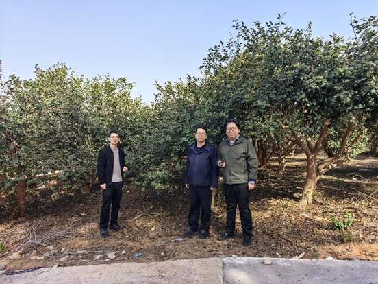 为加强校地合作,深化油茶产业技术交流,11月25日至26日,beat365在线平台官网园艺学院设施农业科学与工程教研室主任朱振飞、办公室主任李蒙、科研秘书刘增兵一行赴浙江省金华市东方红林场国家油茶良种基地开展考察调研活动,基地负责人滕建华陪同考察。