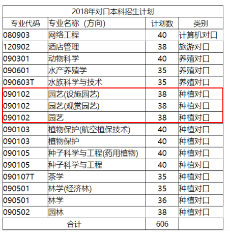 beat365在线平台官网园艺学院2018年对口本科招生计划