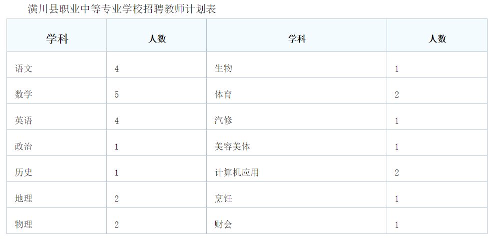 2.招聘岗位:详见潢川县职业中等专业学校招聘教师计划表。